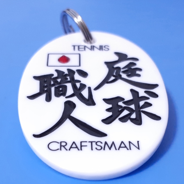 [アクリル小判札]庭球職人 ネームタグ 彫刻 インク黒 裏面にお名前[商品ID39]