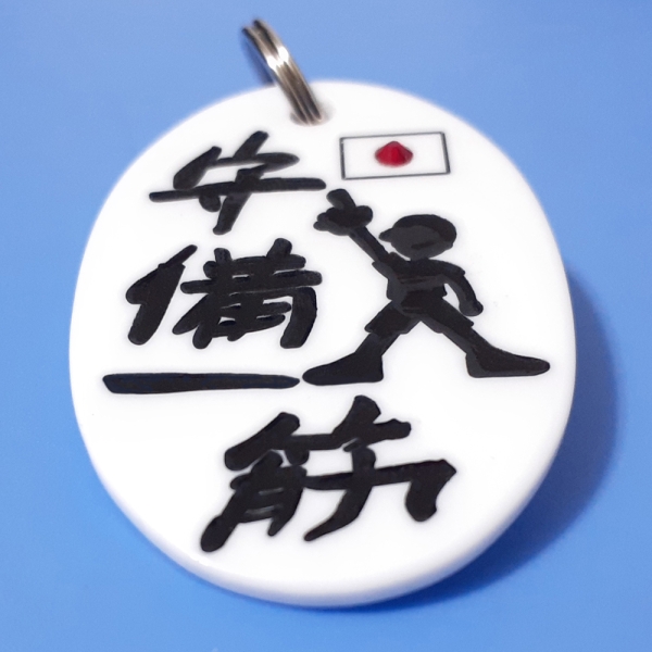 [アクリル小判札]庭球一筋 ネームタグ 彫刻 インク黒 裏面にお名前[商品ID43]
